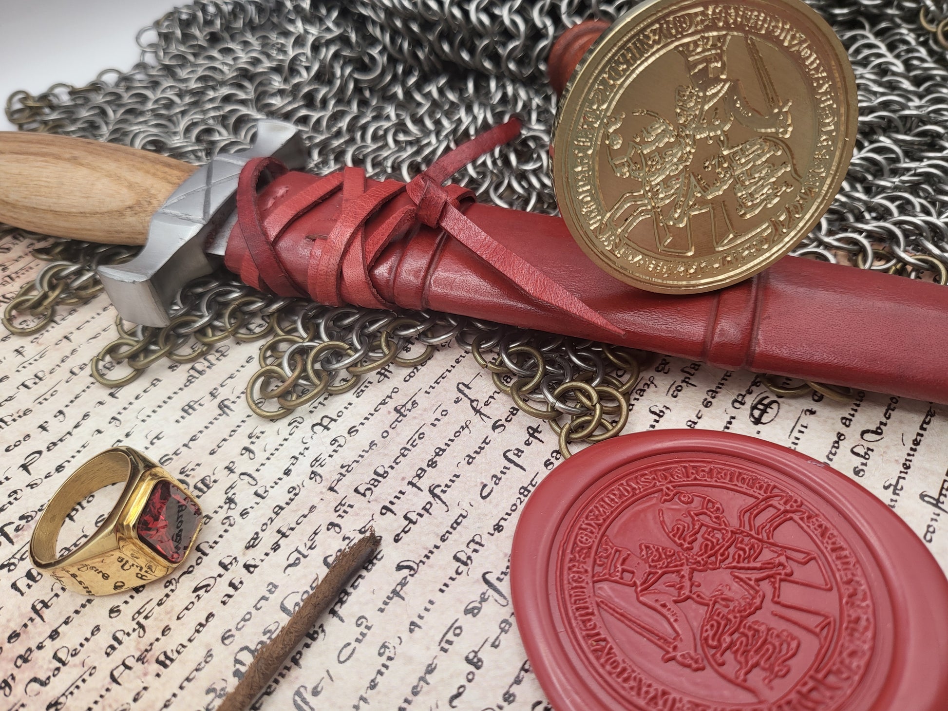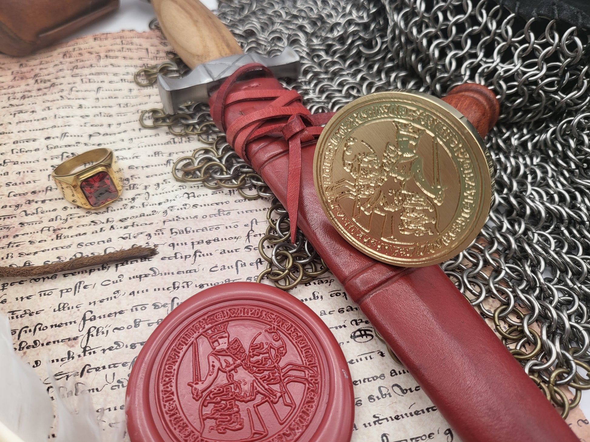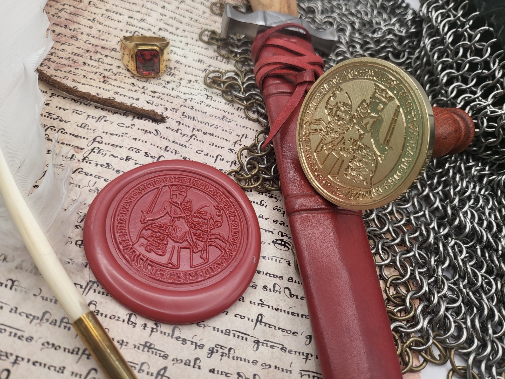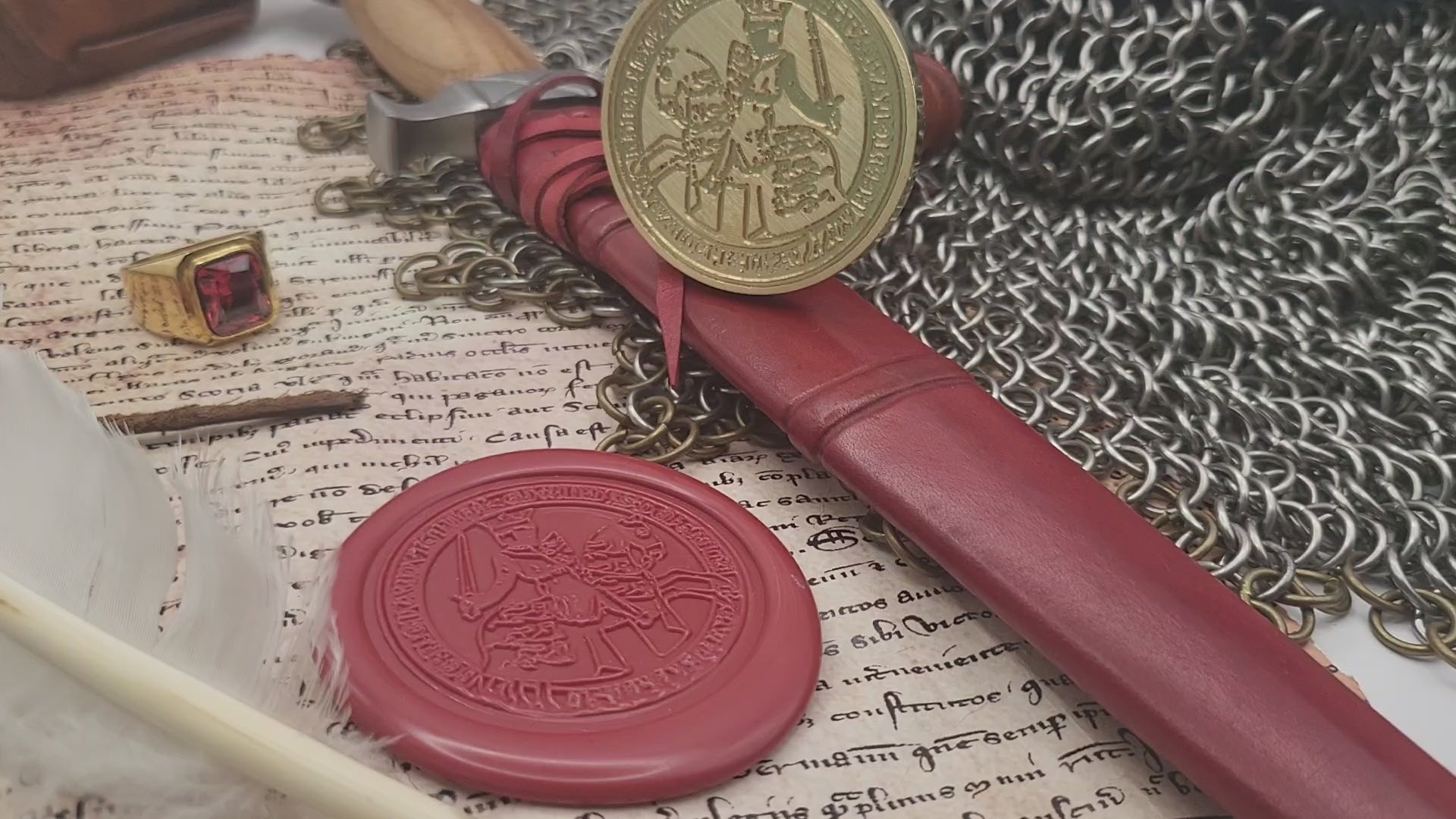 This wax sealing stamp is based on the Great Seal of the Realm used by King Edward I of England (r. 1272–1307), also known as "Longshanks" due to his imposing height. The Great Seal served as the monarch’s official mark of authority, used to authenticate royal documents, charters, and legal decrees throughout the kingdom.
